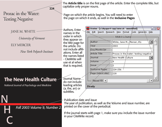 Finding bibliographic info: Web pages and articles published in a journal on the internet
