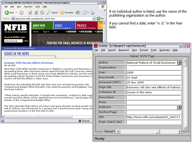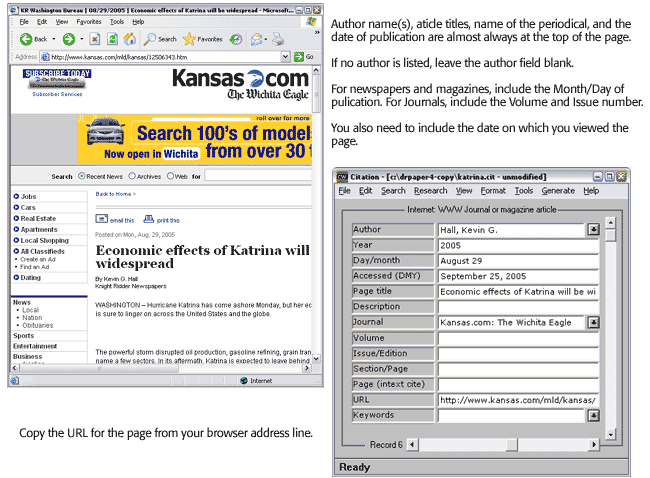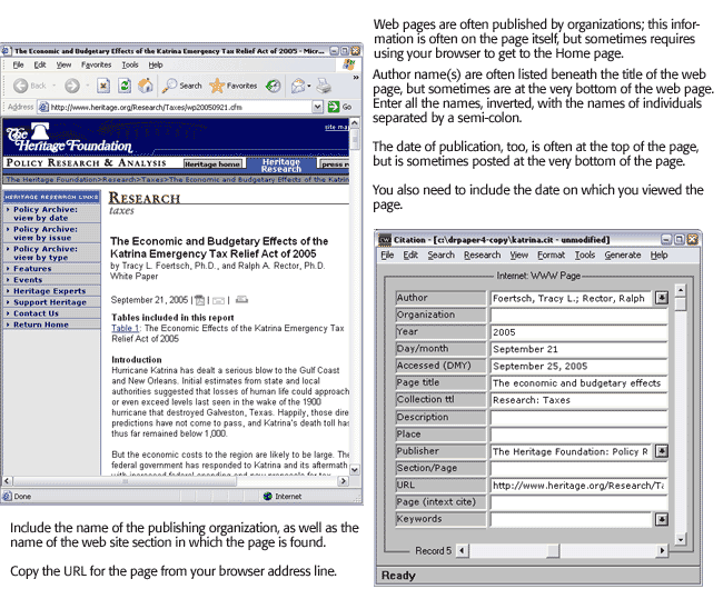 Finding bibliographic information: web pages and journal articles published on the internet.